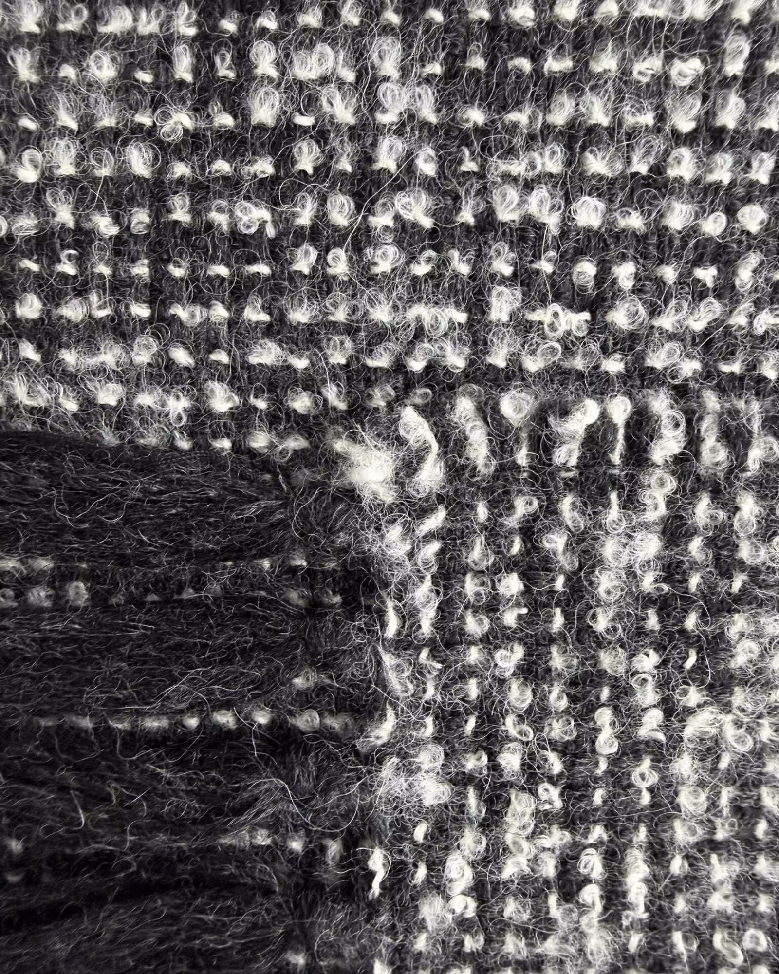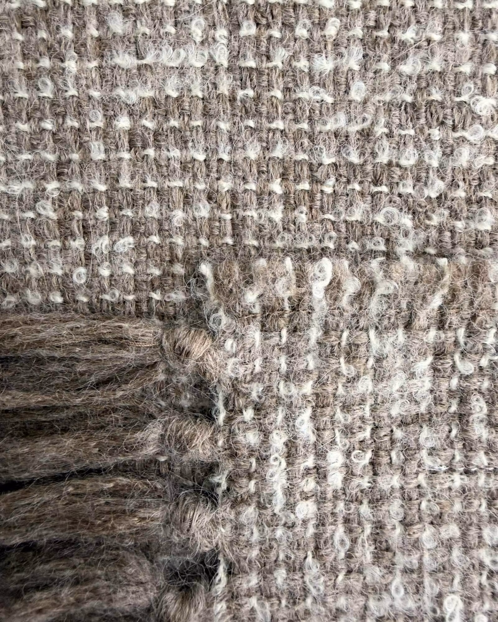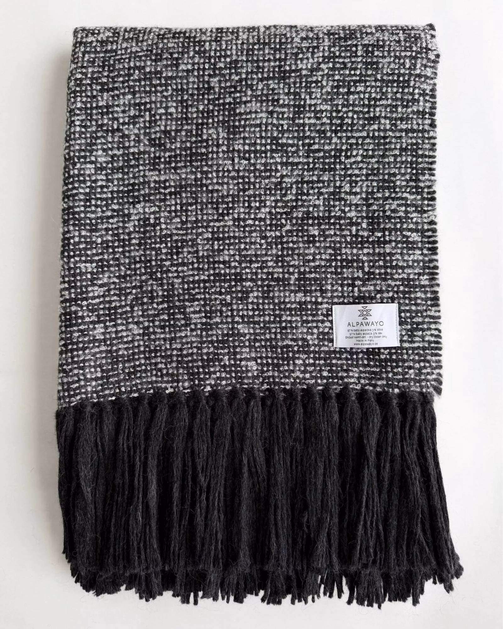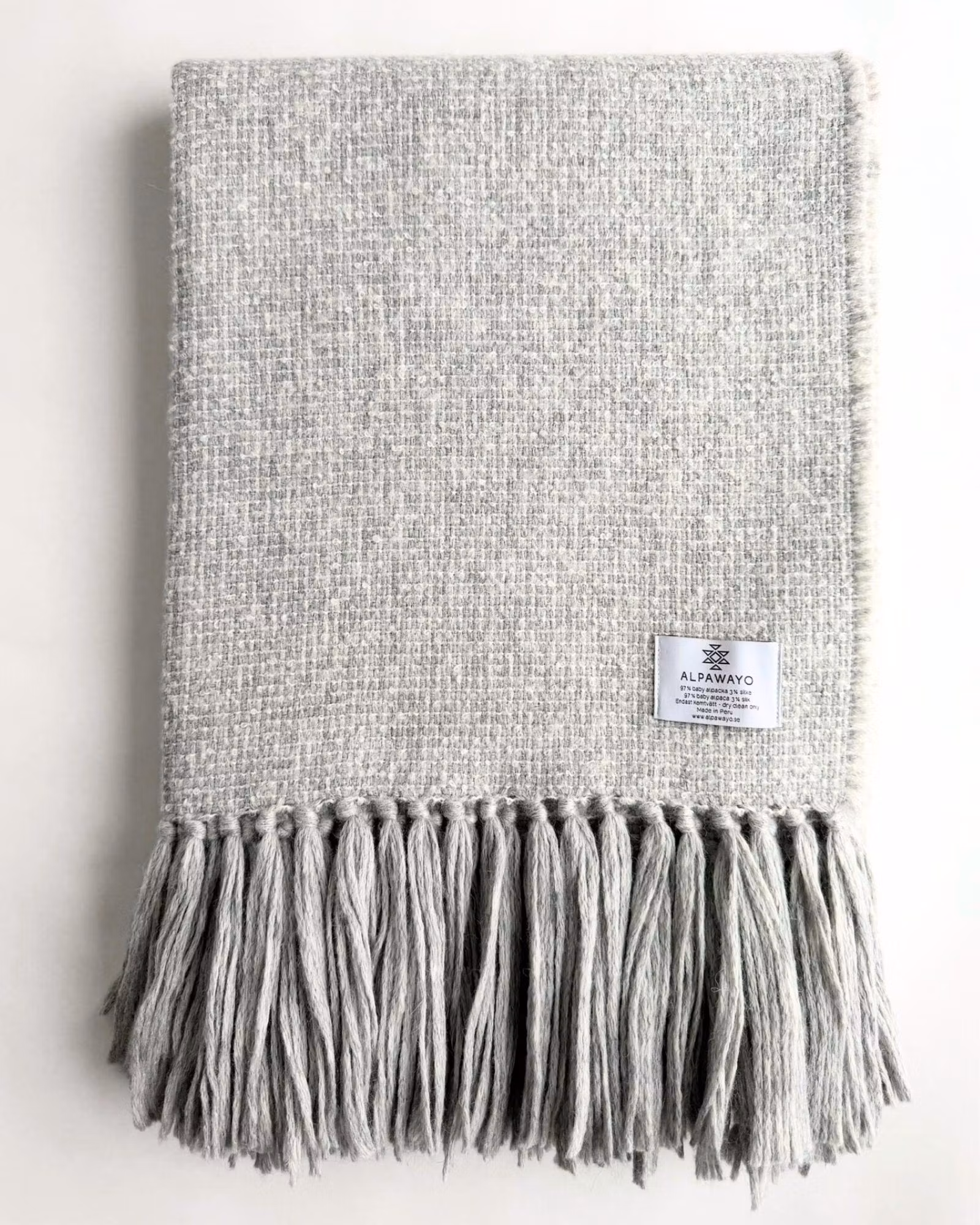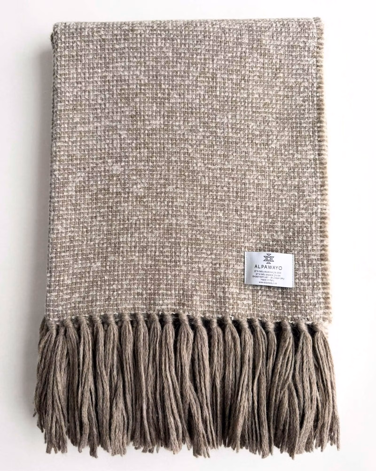 Med 97% baby alpaca och 3% silke får filten en fyllig och rejäl struktur. Den känns något tyngre och tätare än många andra modeller, samtidigt som ytan är mjuk och len mot huden.