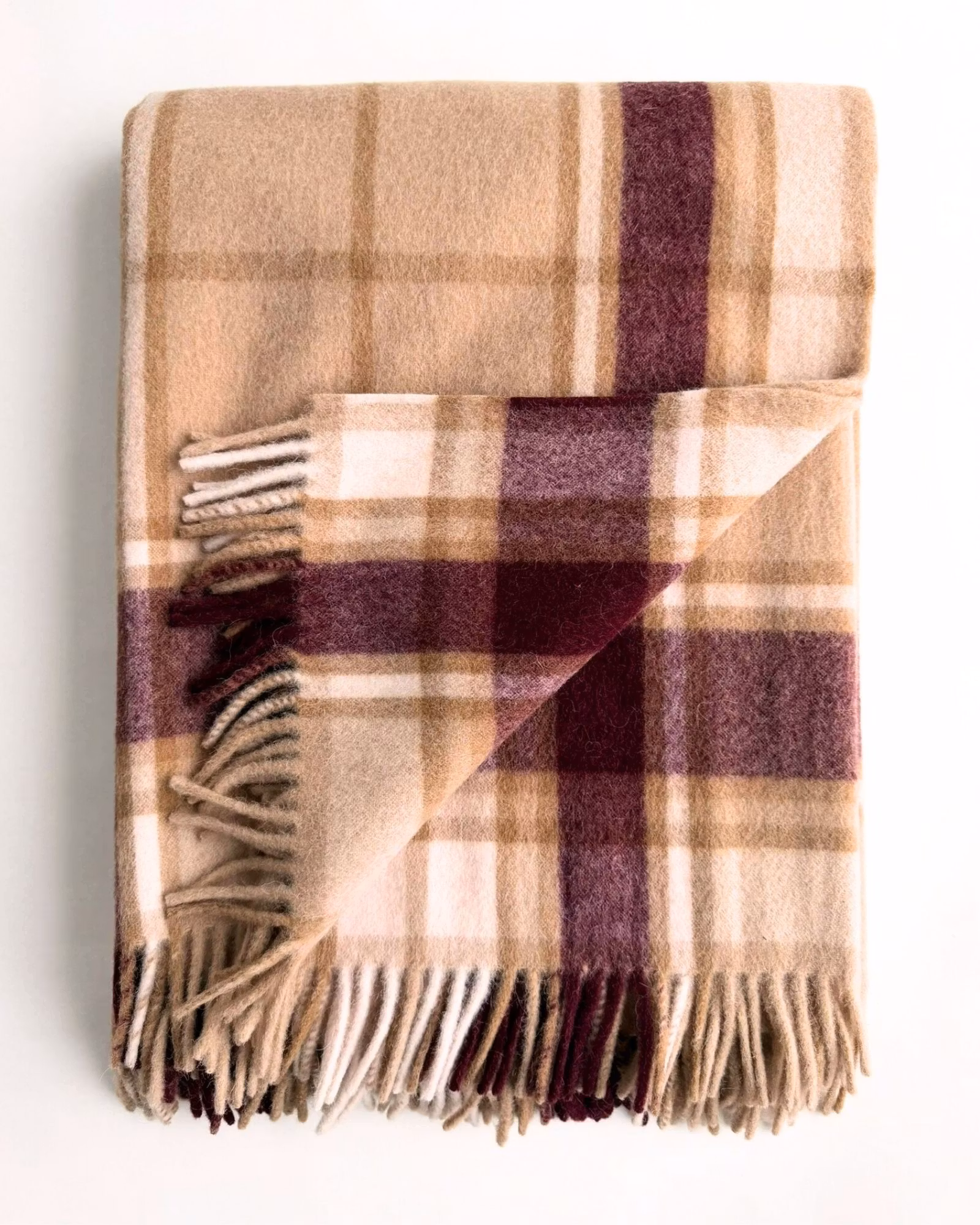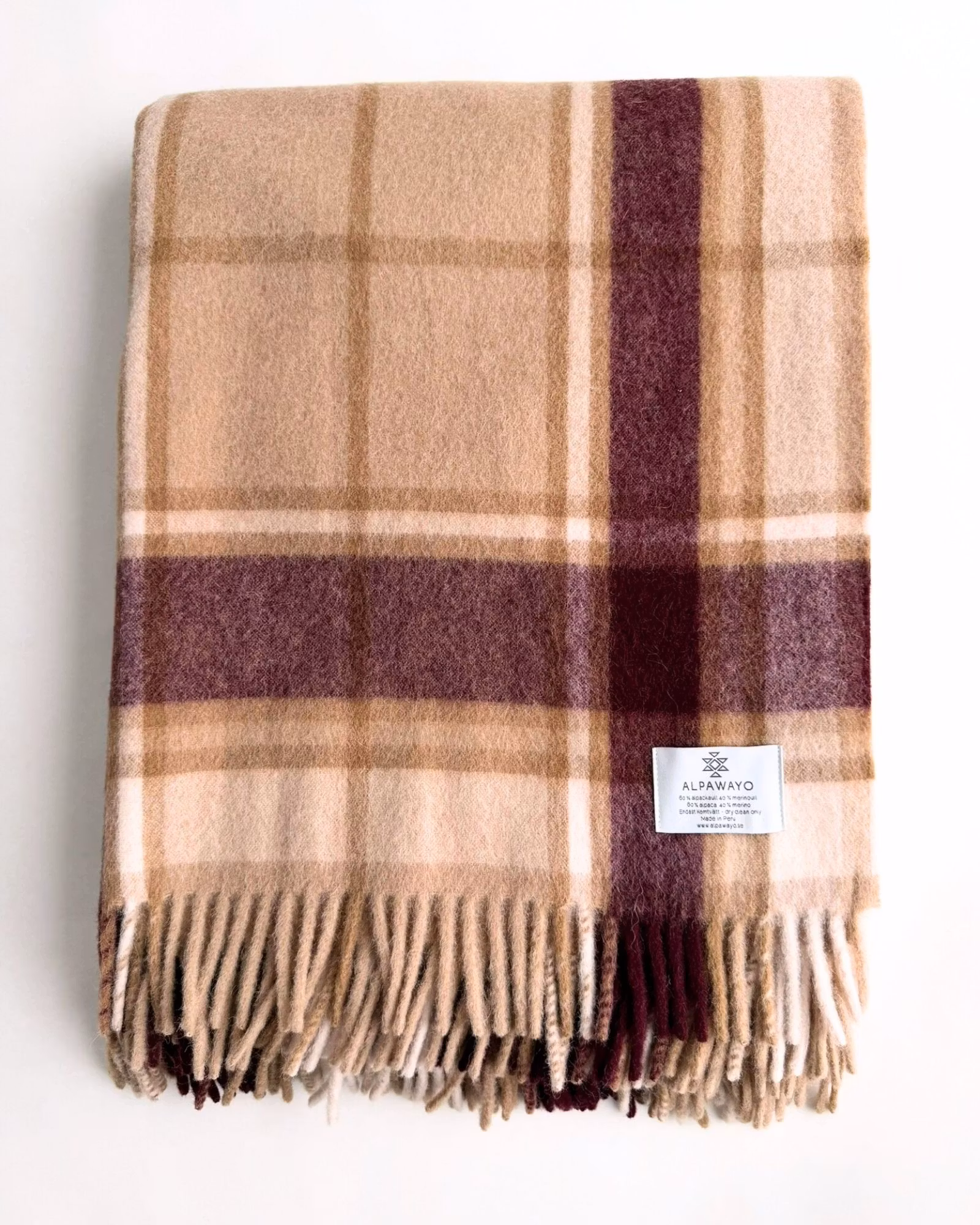 Klassisk alpackafilt i 60% baby alpaca och 40% merinoull. TIYU har sofistikerat rutmönster i kamel och vinrött med tät, varm struktur.