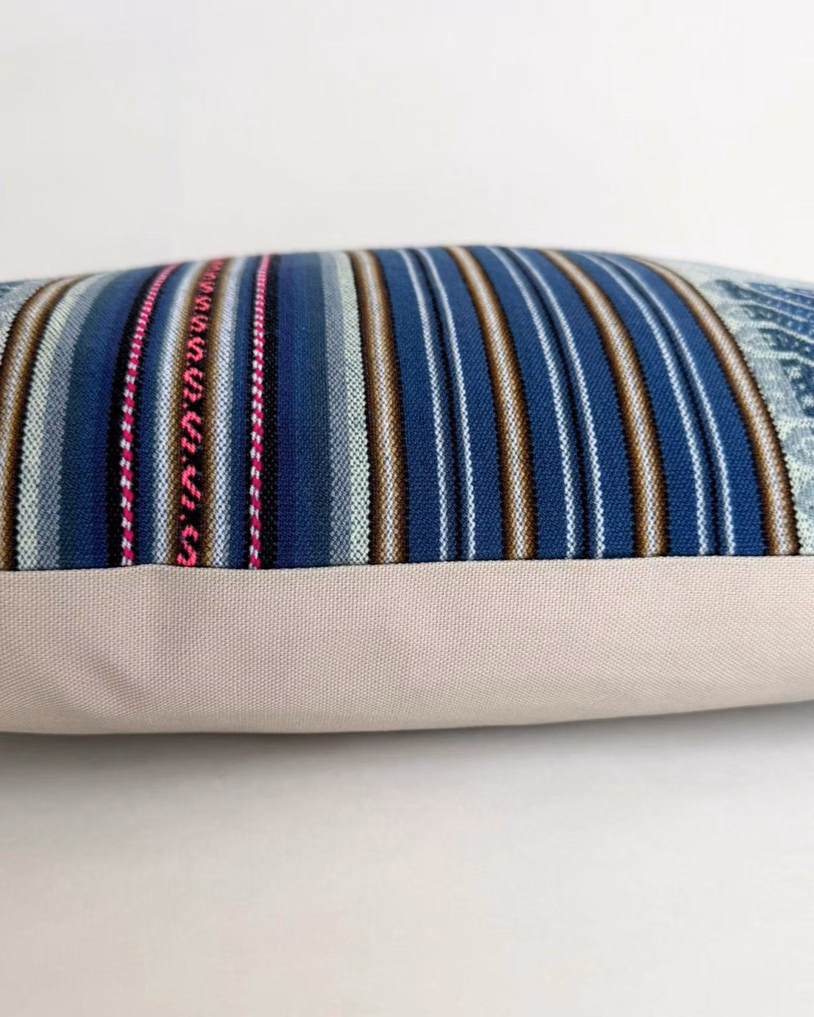Handgjort kuddfodral i blå aguayo – unikt andinskt textilhantverk sytt i Sverige. En kudde med kultur, lugn och karaktär. Skickas varsamt inom några dagar.