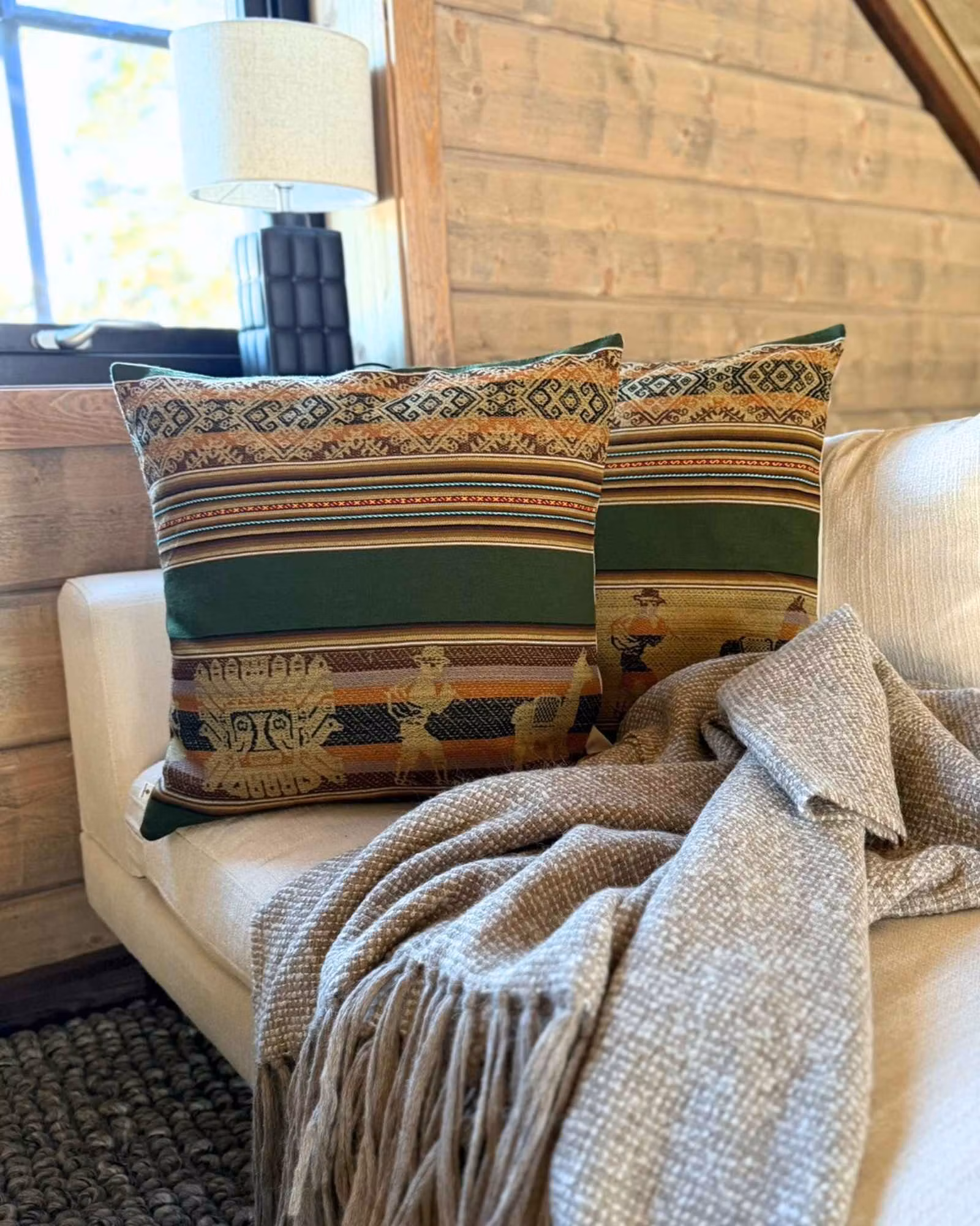 Ge ditt hem en jordnära och varm känsla med ett kuddfodral i traditionellt vävt aguayo-tyg från Anderna.